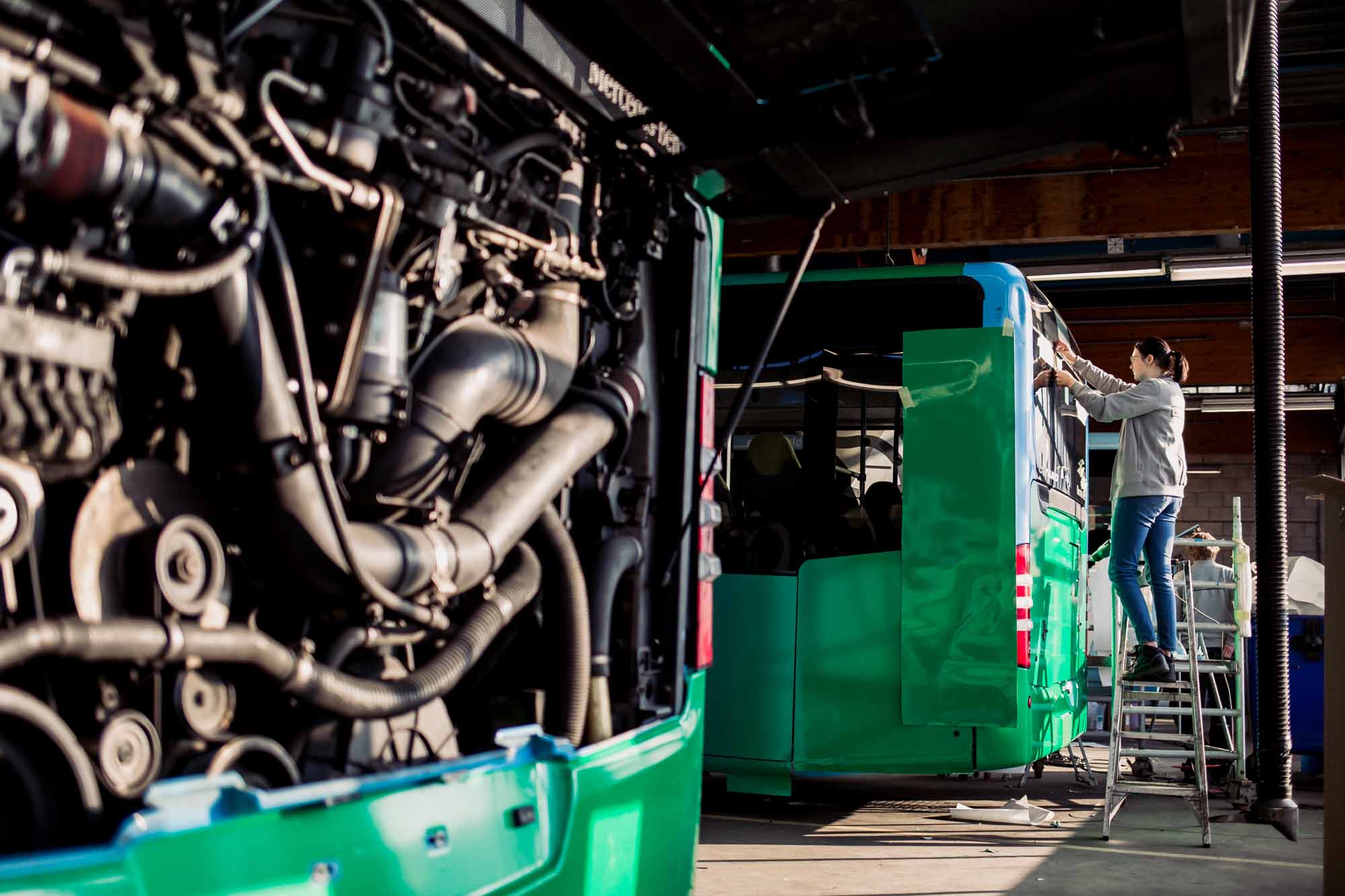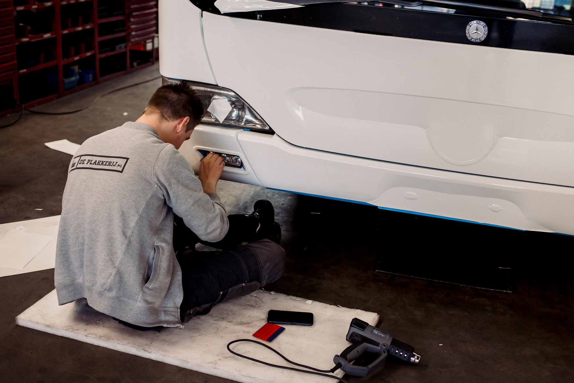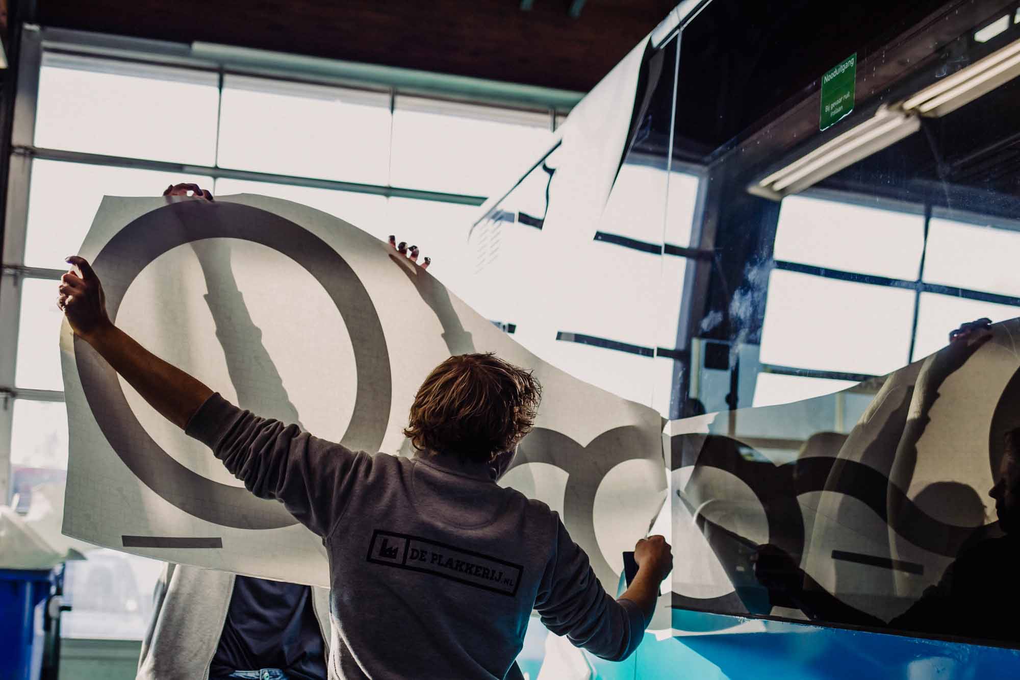 Naast het werk in onze eigen hal verzorgen we ook bestickeringsprojecten door heel Nederland, zoals bij deze klus op locatie. Voor RRReis hebben we op locatie meerdere bussen, waaronder ook elektrische varianten, voorzien van de herkenbare RRReis-huisstijl.