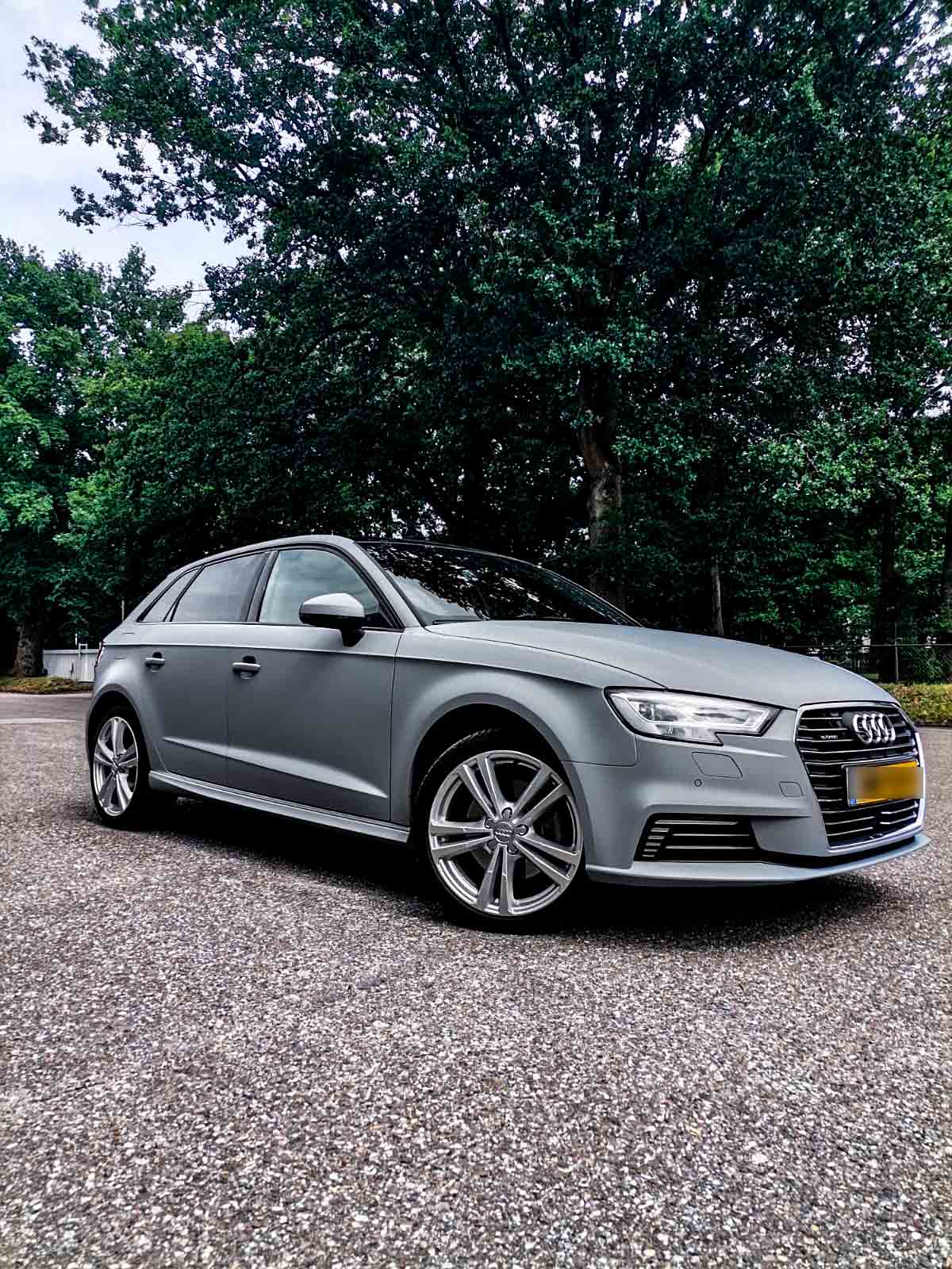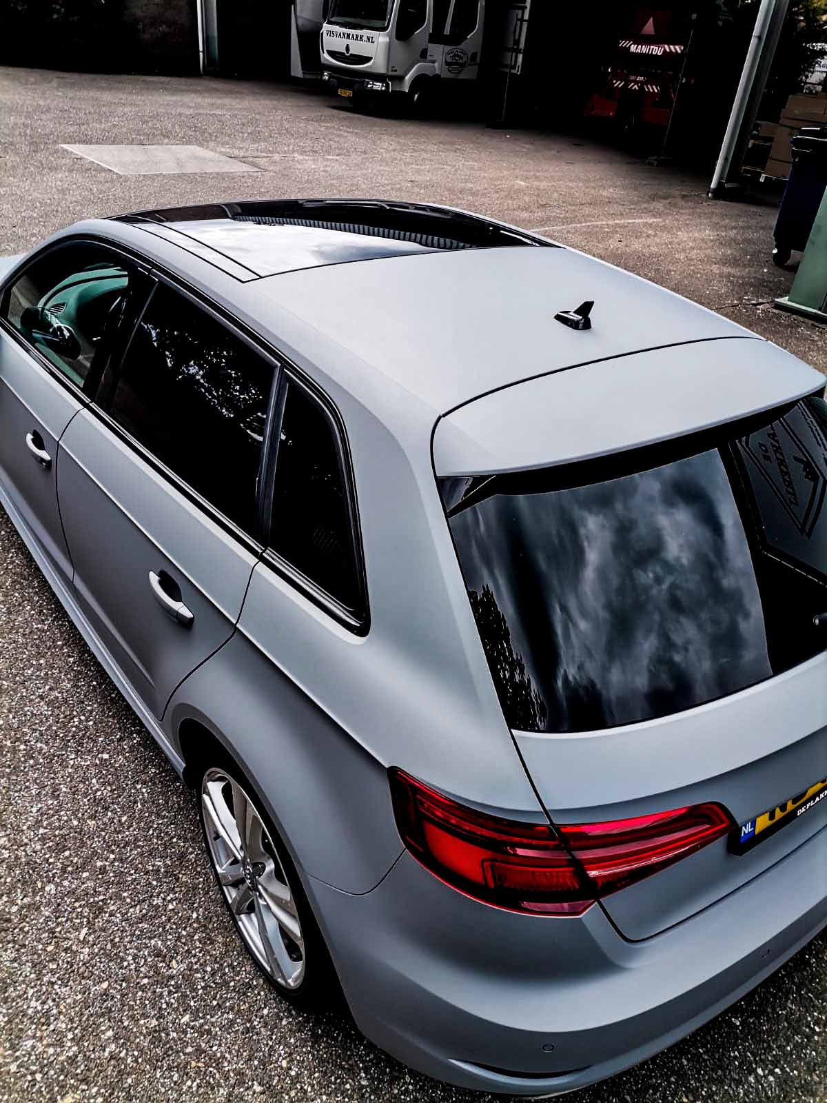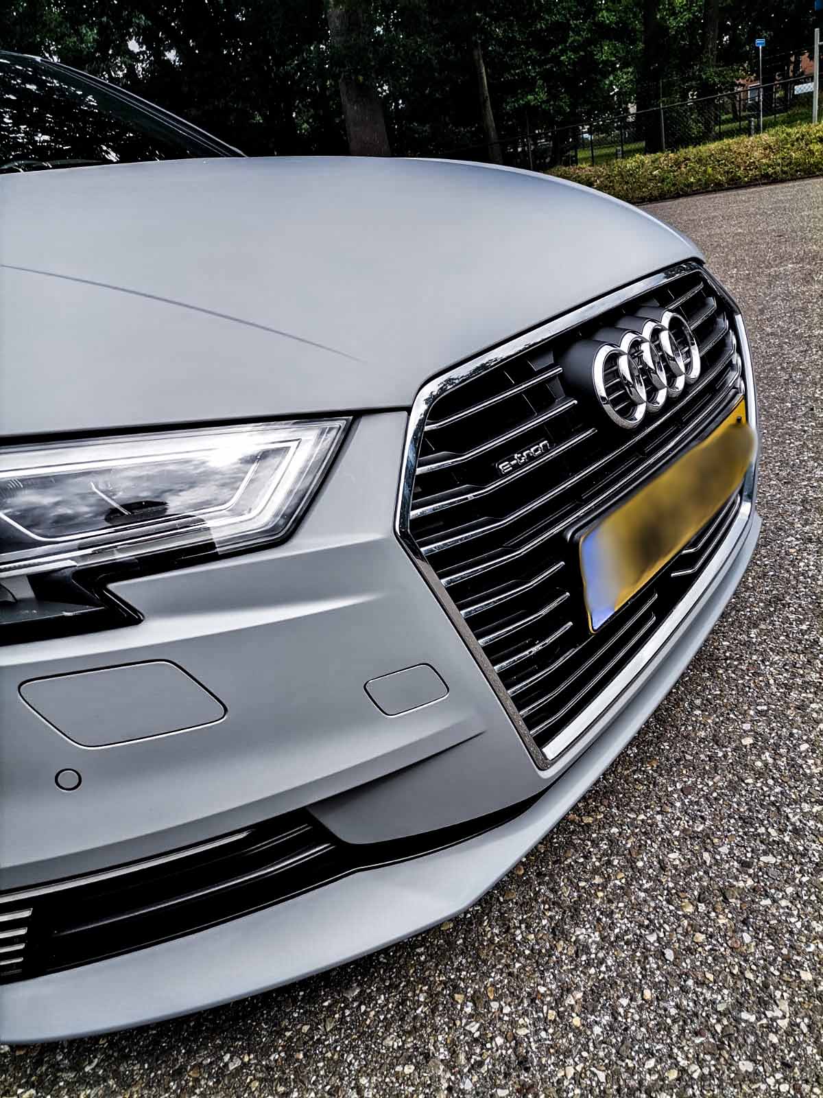 Voor deze Audi hebben we een volledige carwrap in mat grijs aangebracht voor een sportieve en stoere uitstraling.